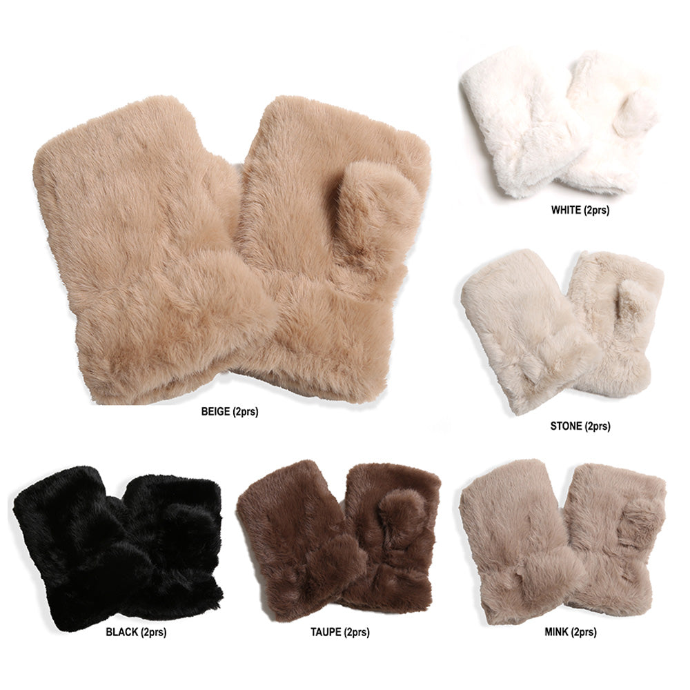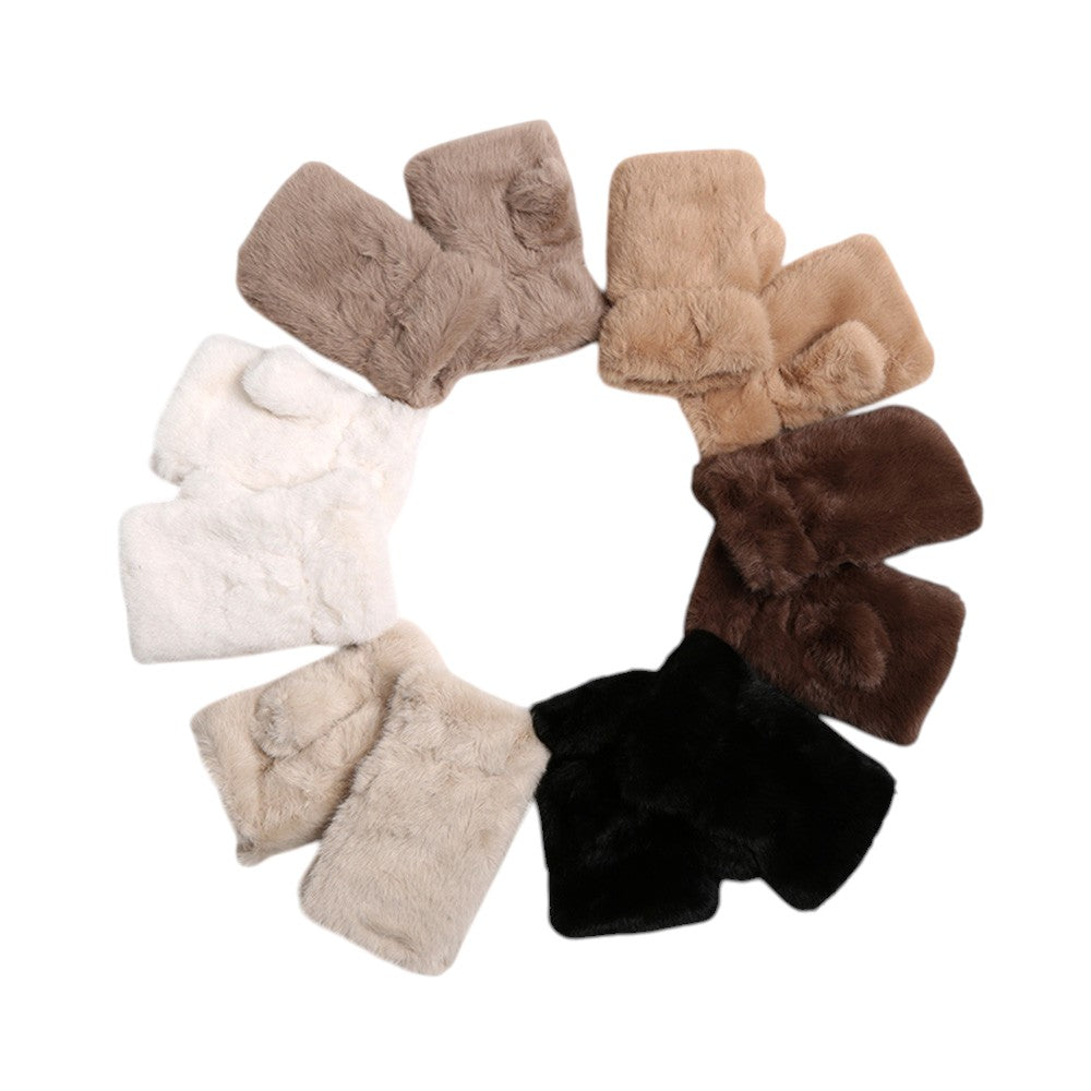 • Add warmth and style with these faux fur fingerless gloves.