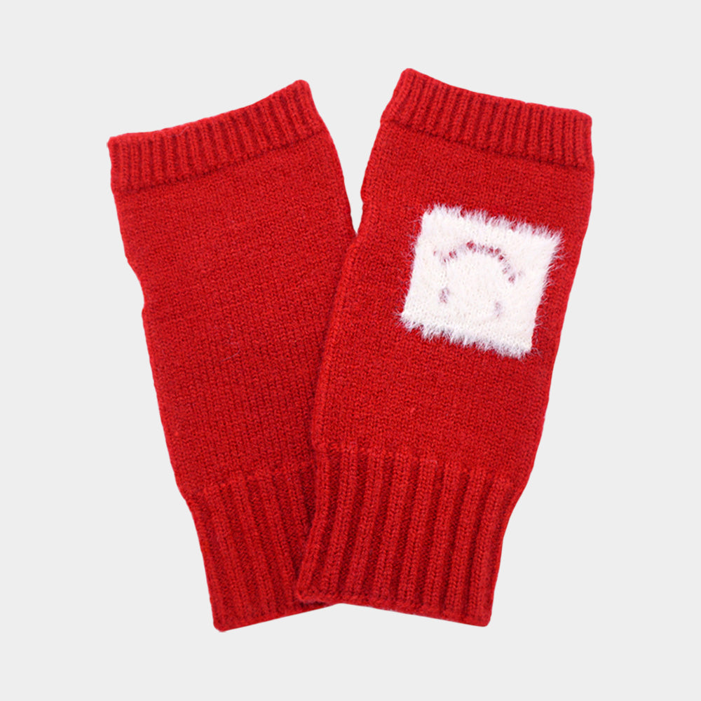 • Soft fingerless knit gloves featuring a playful smiley detail, designed for warmth and comfort while keeping your fingers free. Perfect for layering in cooler weather, they offer both practicality and casual charm for everyday wear.