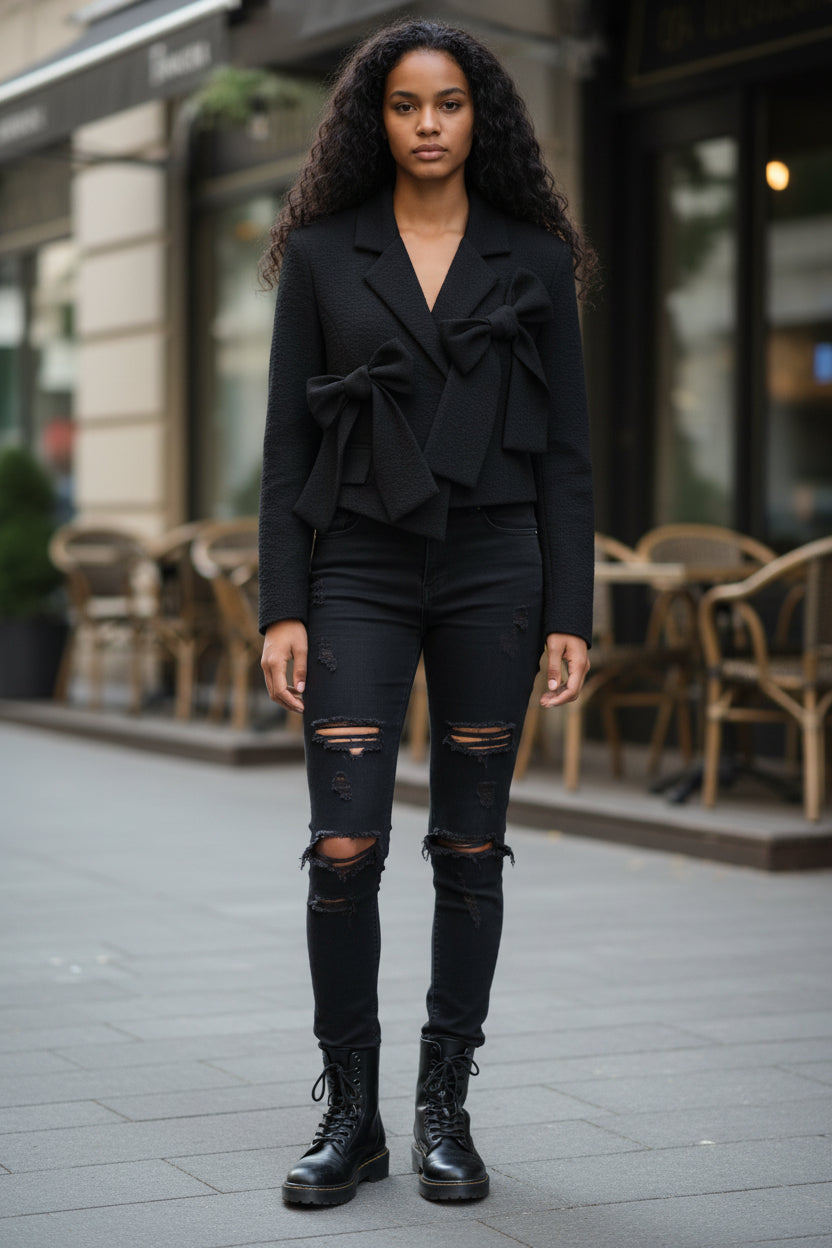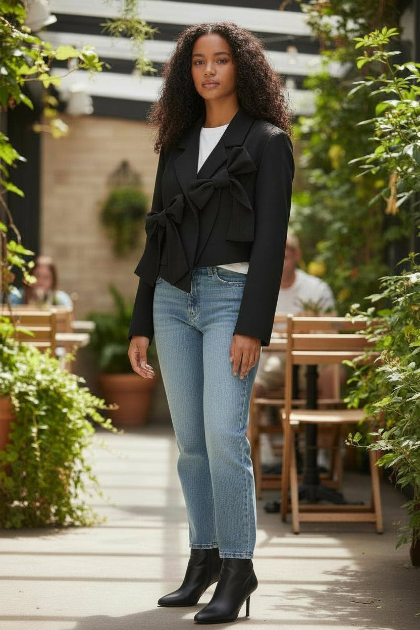 Blazer with 2 bows on front looks great with jeans or dress pants