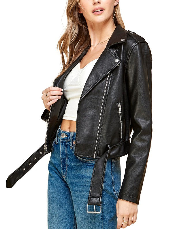 Faux leather moto jacket