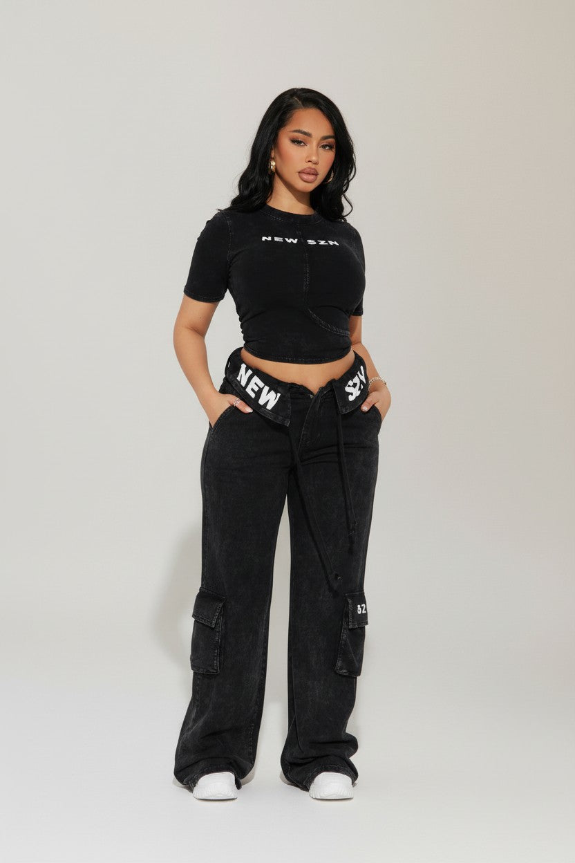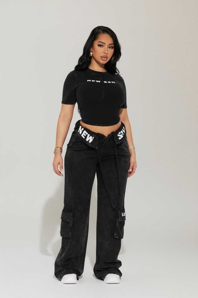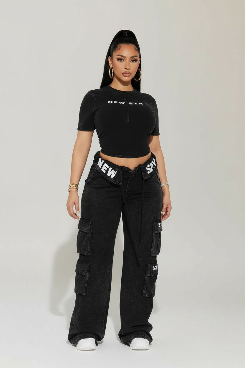 Get ready to turn heads with this must-have two-piece set! Featuring mineral-washed cargo pants with that effortlessly cool vibe, paired with a super stretchy top that moves with you all day. The perfect combo of comfort and style—dress it up or keep it casual. This set is your new go-to for looking cute without sacrificing that cozy feel. Versatile, flattering, and absolutely essential for your wardrobe.