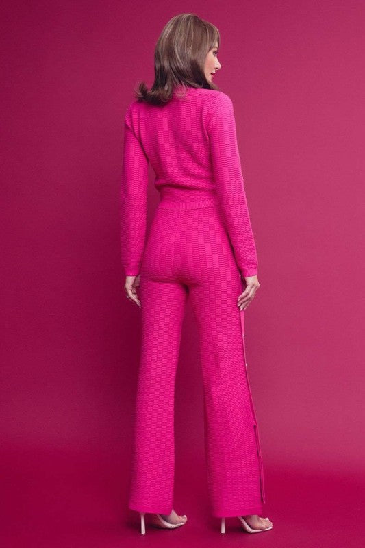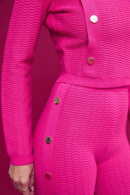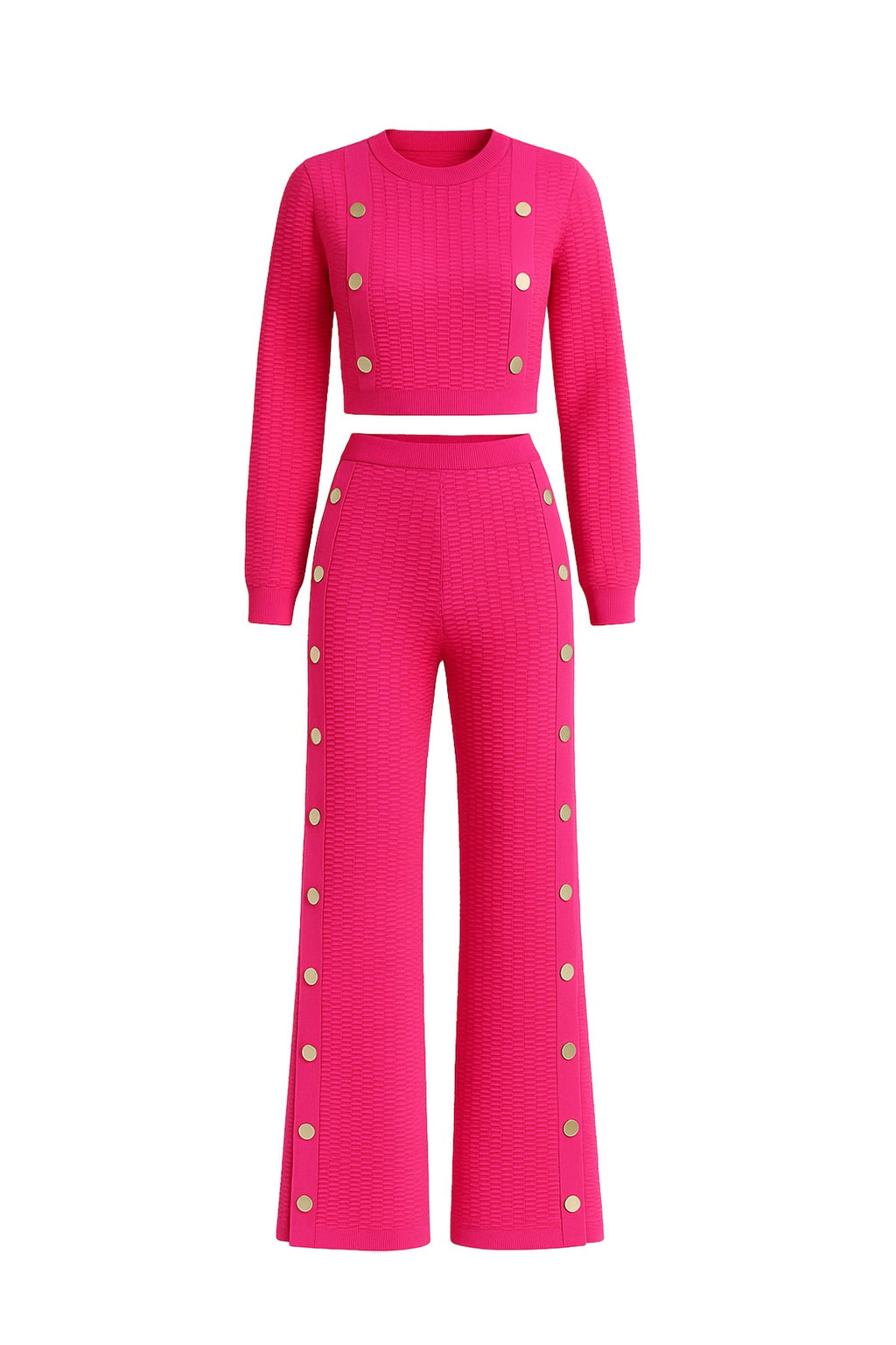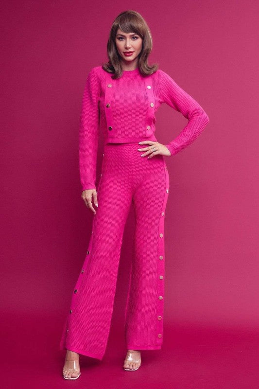 Ribbed Sweater and pant set with gold buttons...Elastic waist