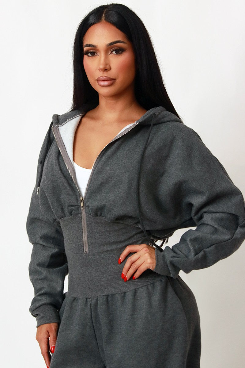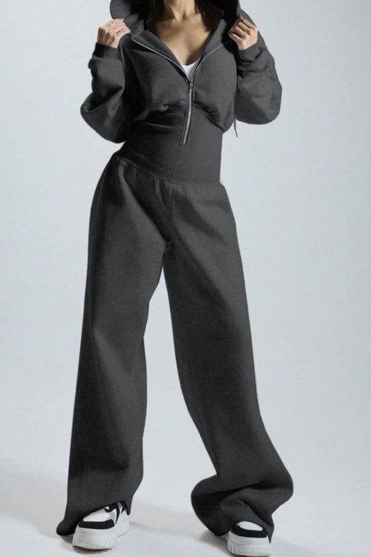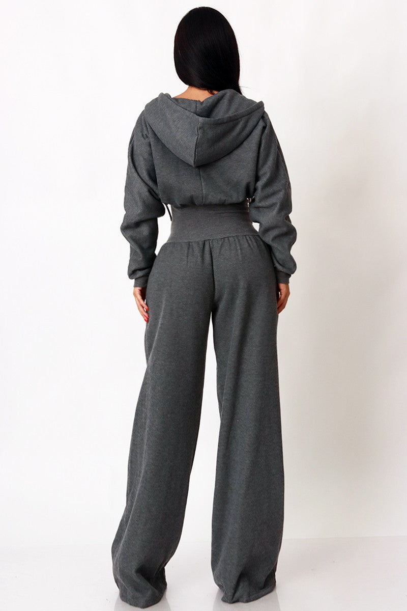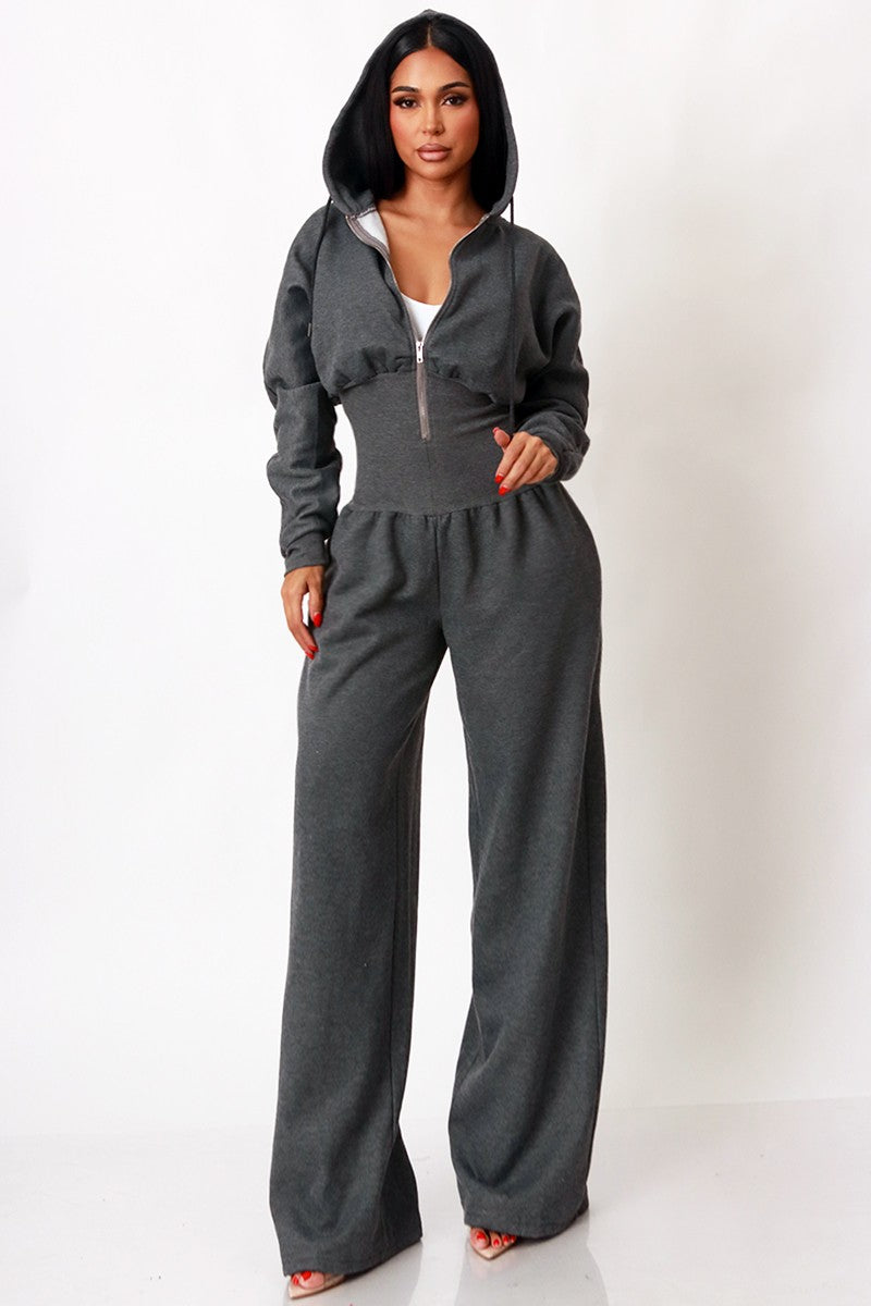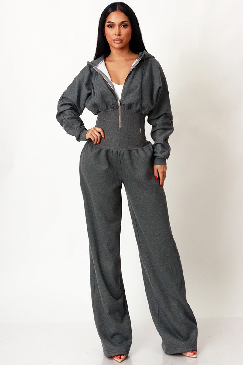 HOODIE ZIP THROUGH JOGGER WIDE LEG JUMPSUIT