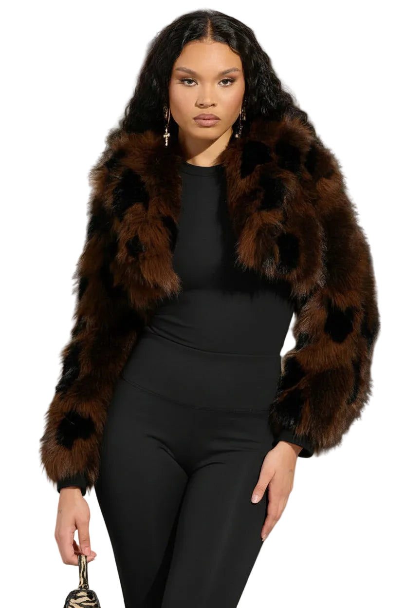 This super cropped brown and black faux fur coat guarantees VIP energy, no guest list needed.