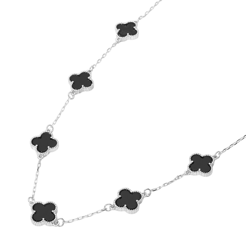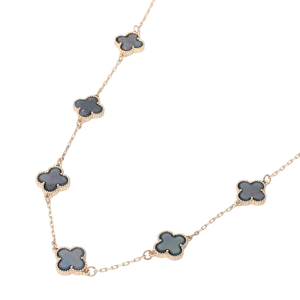 • An elegant quatrefoil charm station necklace crafted with a sleek, modern silhouette. Its repeating clover design adds a refined touch that elevates everyday outfits or special-occasion looks, offering a timeless accessory that blends effortlessly with any personal style.