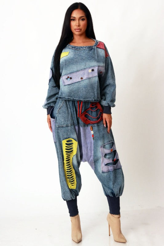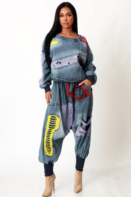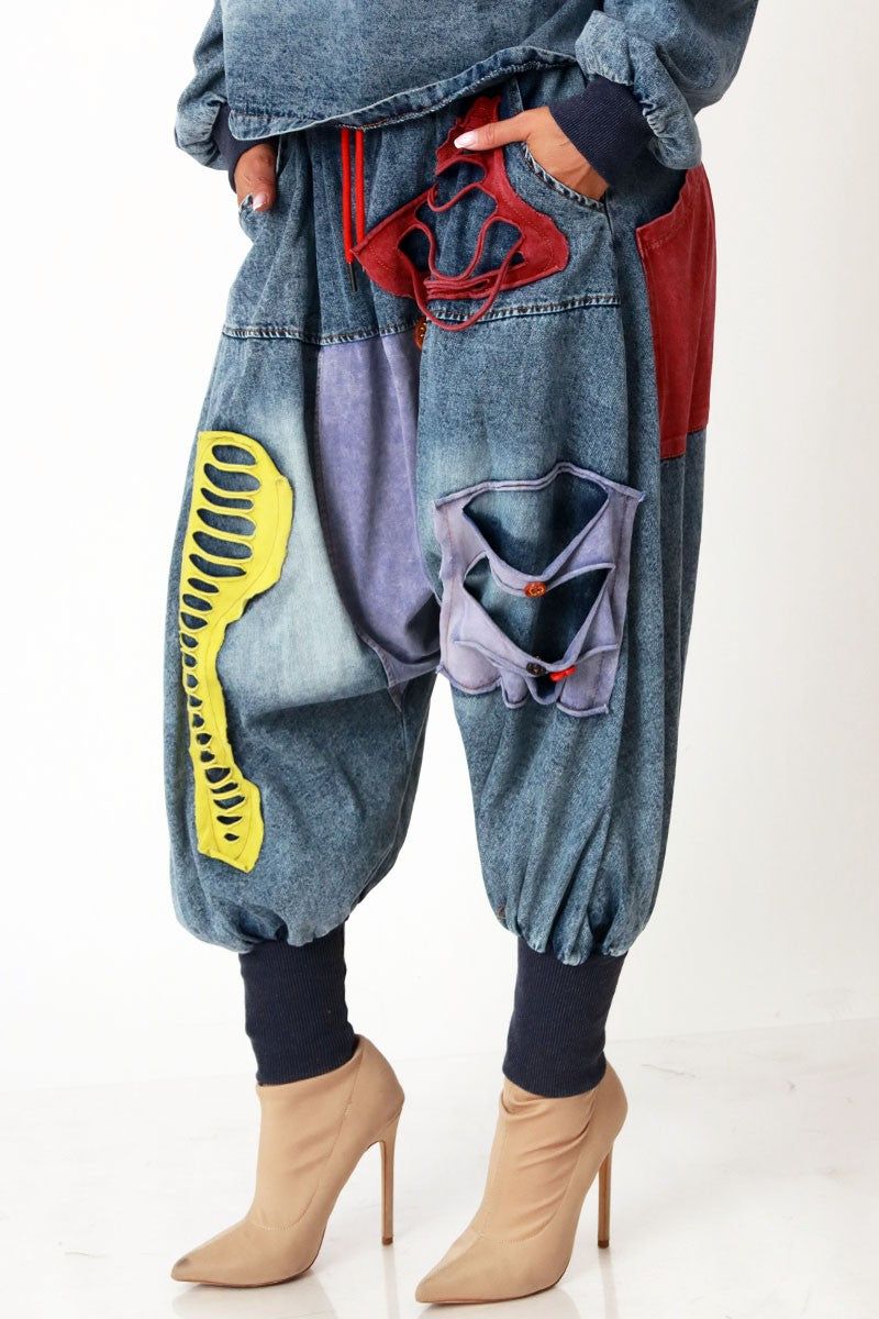 PATCHWORK DENIM OVERSIZE BAGGY PANTS