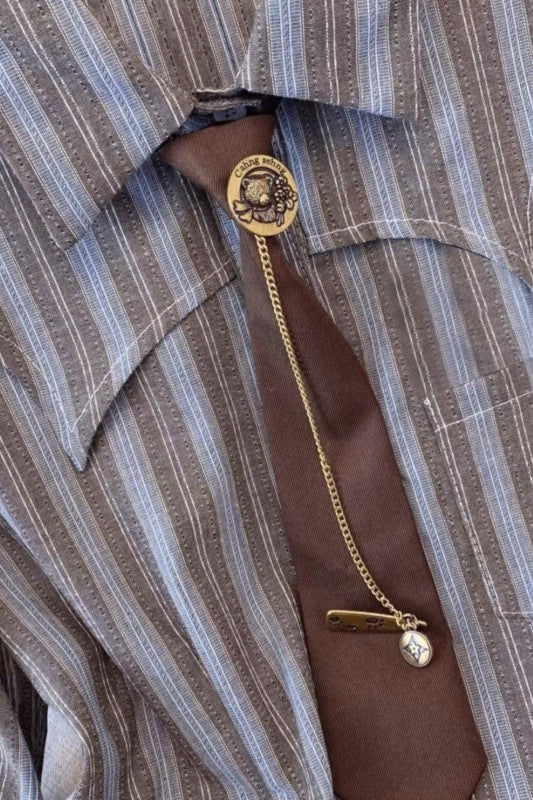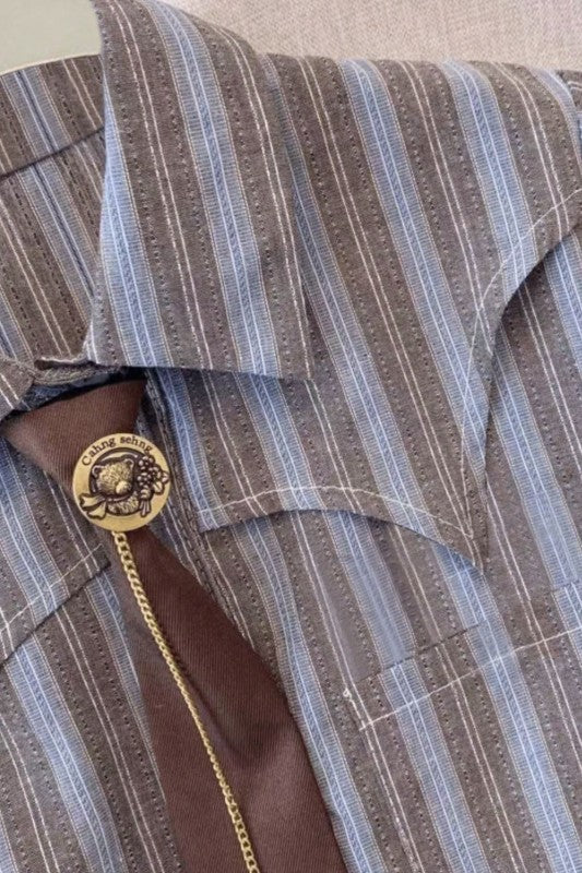 Stripe Fitted Button Shirt with Tie and Brooch Included