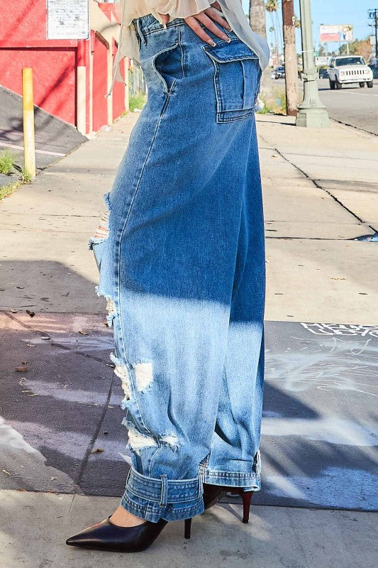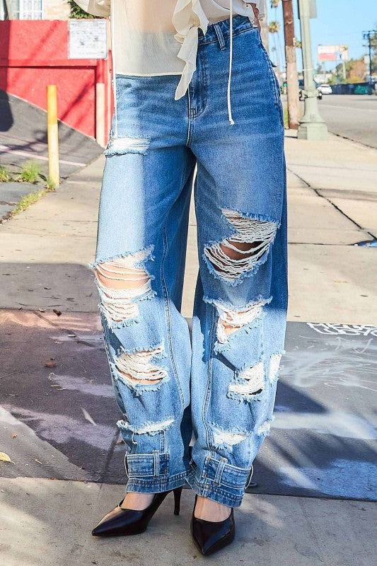 Sever Ripped Baggy Jeans With Adjustable Leg Snap