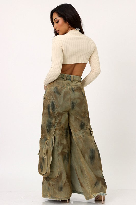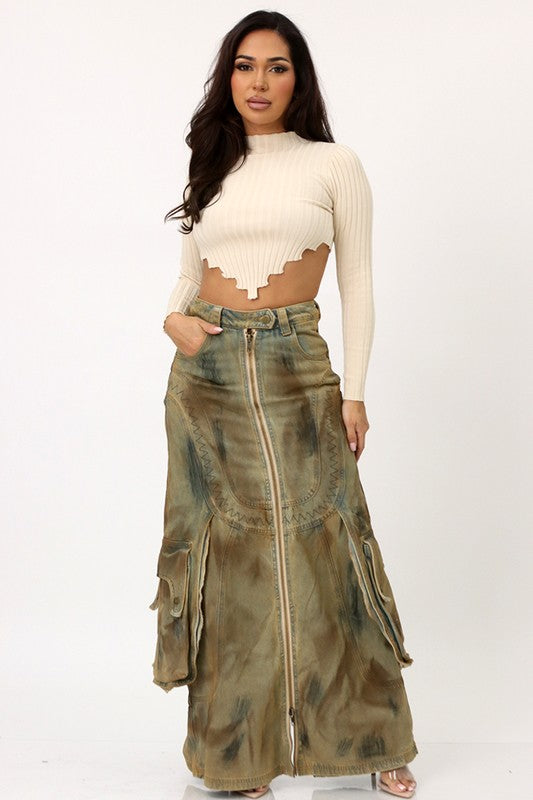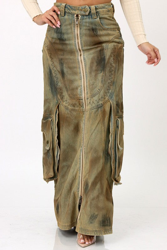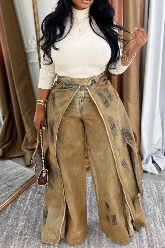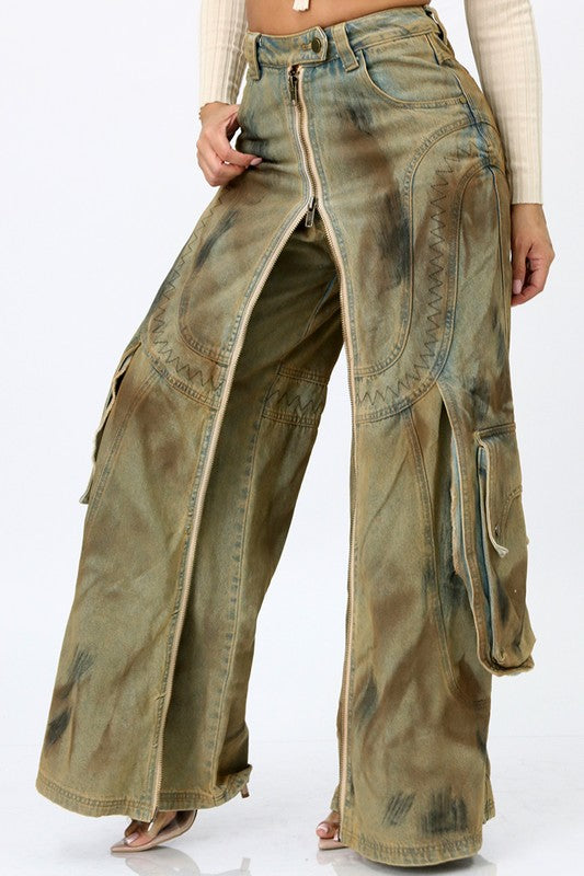 Vintage washed denim jeans that doubles to a zip up skirt. Wear it either way
